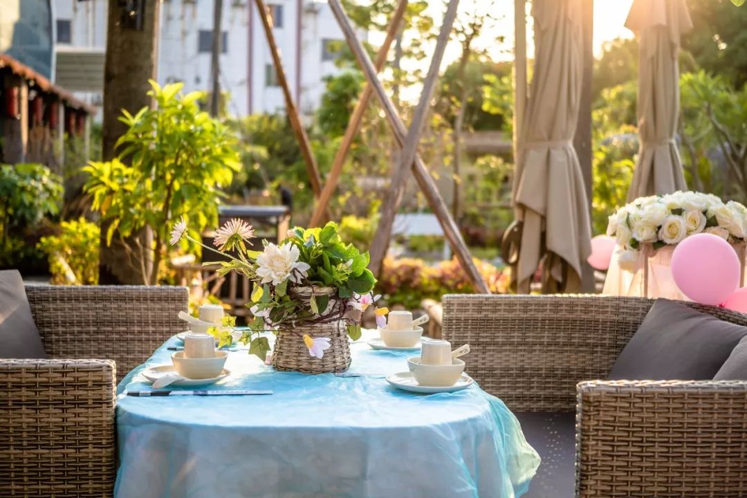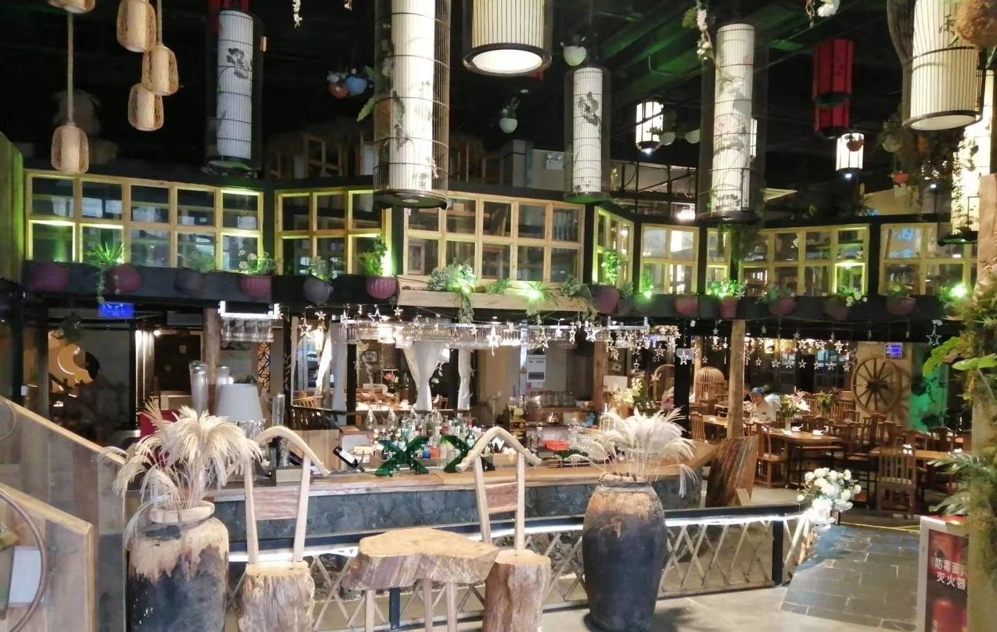 设计风格:园林餐厅。诺大的江南水乡园林造景,中国风亭台楼阁木质园林装修,还有户外雅座和儿童游乐园。