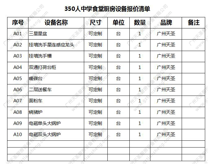 假如你刚好想打造一个350人中学食堂,那么这份清单最合适你了,赶紧下载参考一下吧!