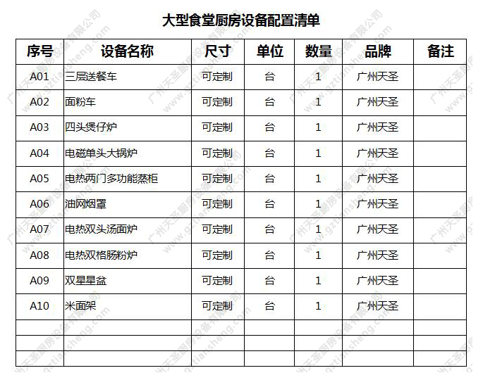 假如你刚好想打造一个大型食堂,那么这份清单最合适你了,赶紧下载参考一下吧!